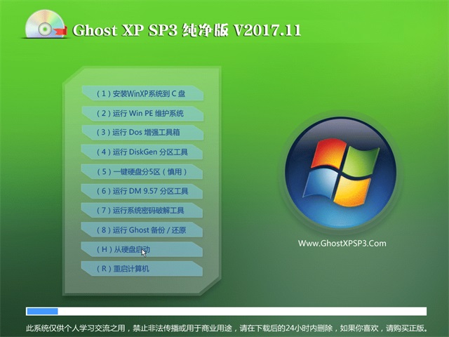 * 源安装盘采用Windows XP SP3官方免激活版,集成系统补丁至2017.11。