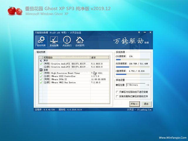 * 安装过程会运行驱动选择工具,此工具可智能判断所有的电脑硬件型号,最大限度地避免了因 驱动冲突而蓝屏的现象。