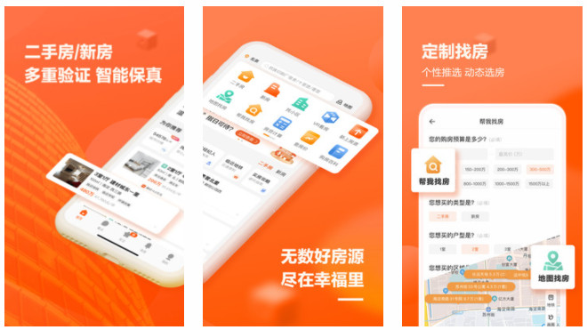 幸福里二手房房源资源查询多重验证专属房源搜索找房的手机软件,幸福里软件中为用户们定制专属的好房房源和个性化精选的动态选房信息,你可以选择小区网络测评评价和动态生活全面扫描功能,随时接收软件为用户们提供
